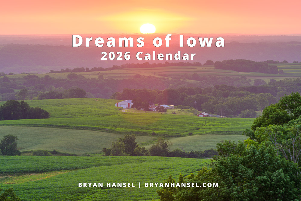 Bring the quiet beauty of northeast Iowa into your home all year long. The Dreams of Iowa 2026 Calendar features twelve original photographs captured along the Mississippi River and across the rolling farm country of Northeast Iowa. From sunrise over winding bluffs to golden fields, rustic farmsteads, and misty river valleys, each month showcases the landscapes that make Iowa feel like home.